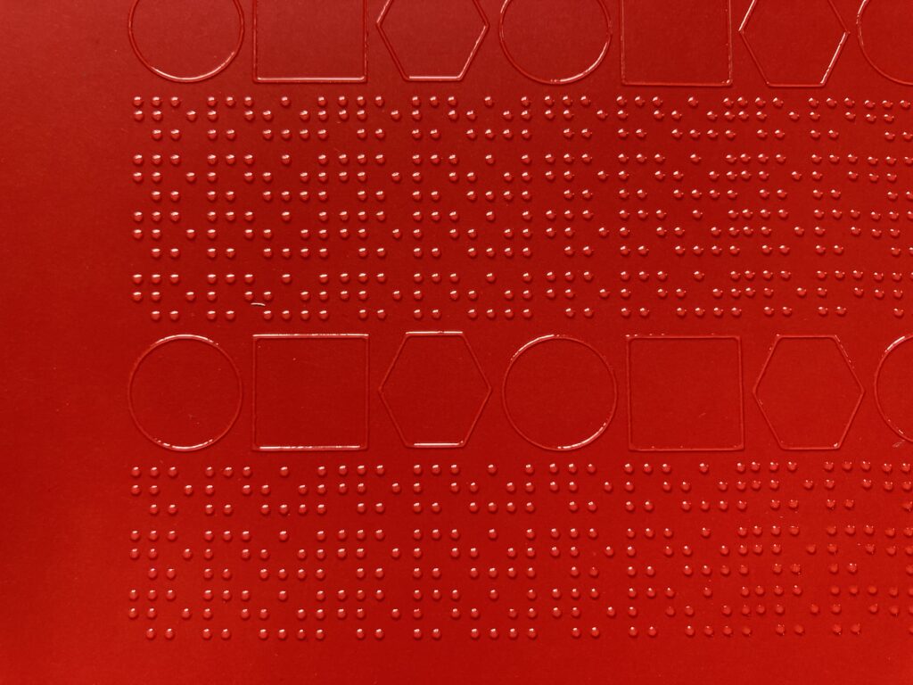 Braille is a tactile writing system made of raised dots that allow blind and low-vision individuals to read by touch. On packaging, it helps users identify products independently, which is critical for safety and compliance. In the pharmaceutical sector, braille is mandatory, often required by law, while in other markets it is increasingly recommended by standards such as ISO.